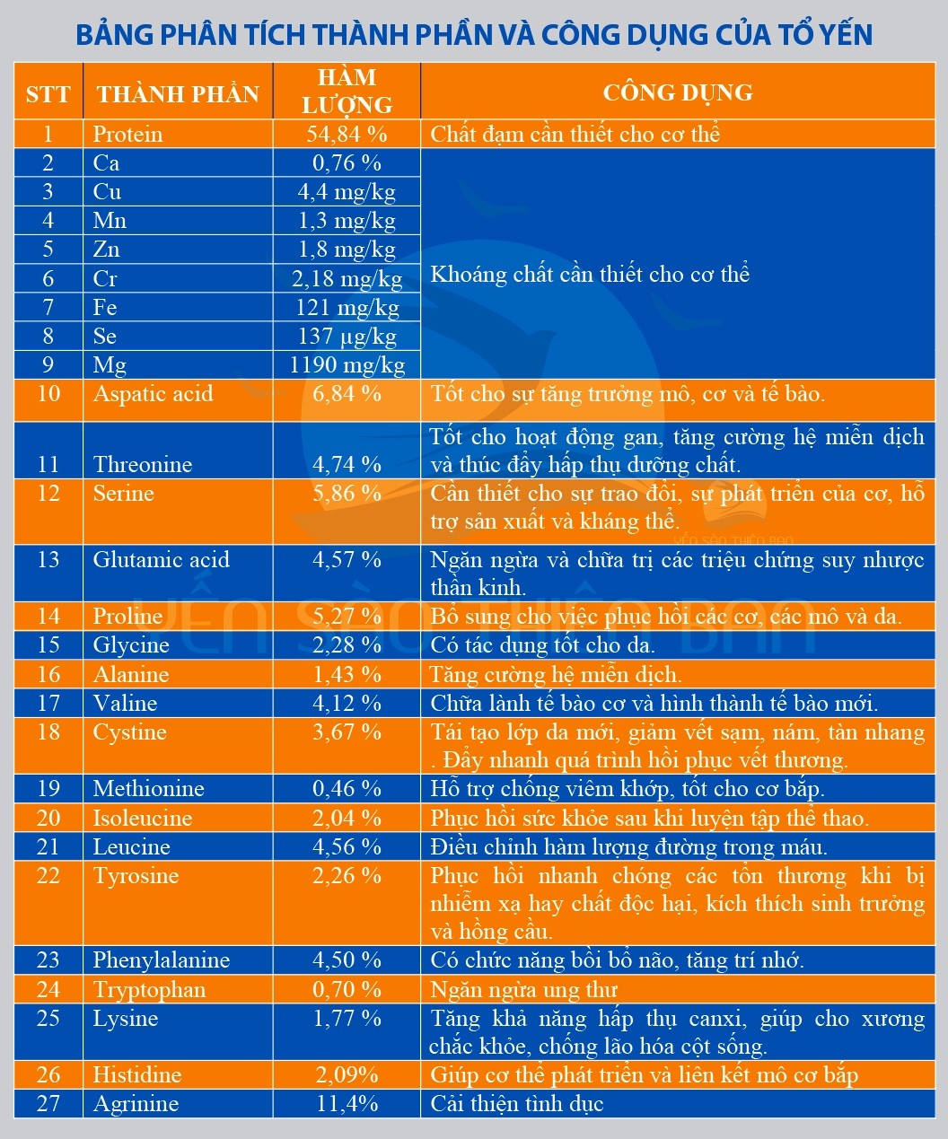 - Thành phần của yến sào.
