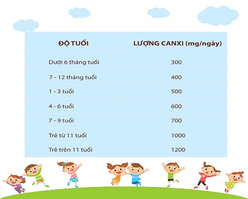 Nhu cầu canxi của trẻ sẽ đi theo từng độ tuổi. Dưới đây là bảng nhu cầu canxi của bé: